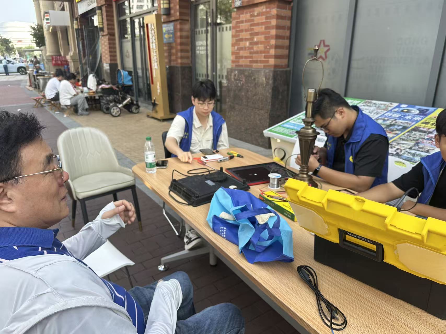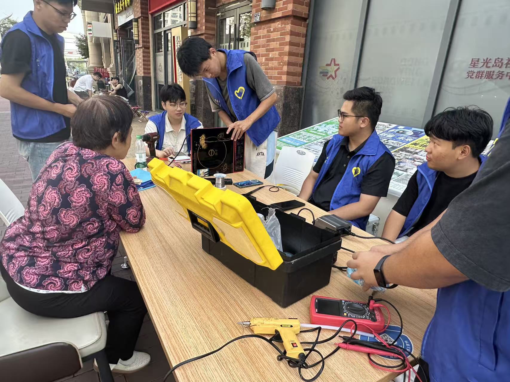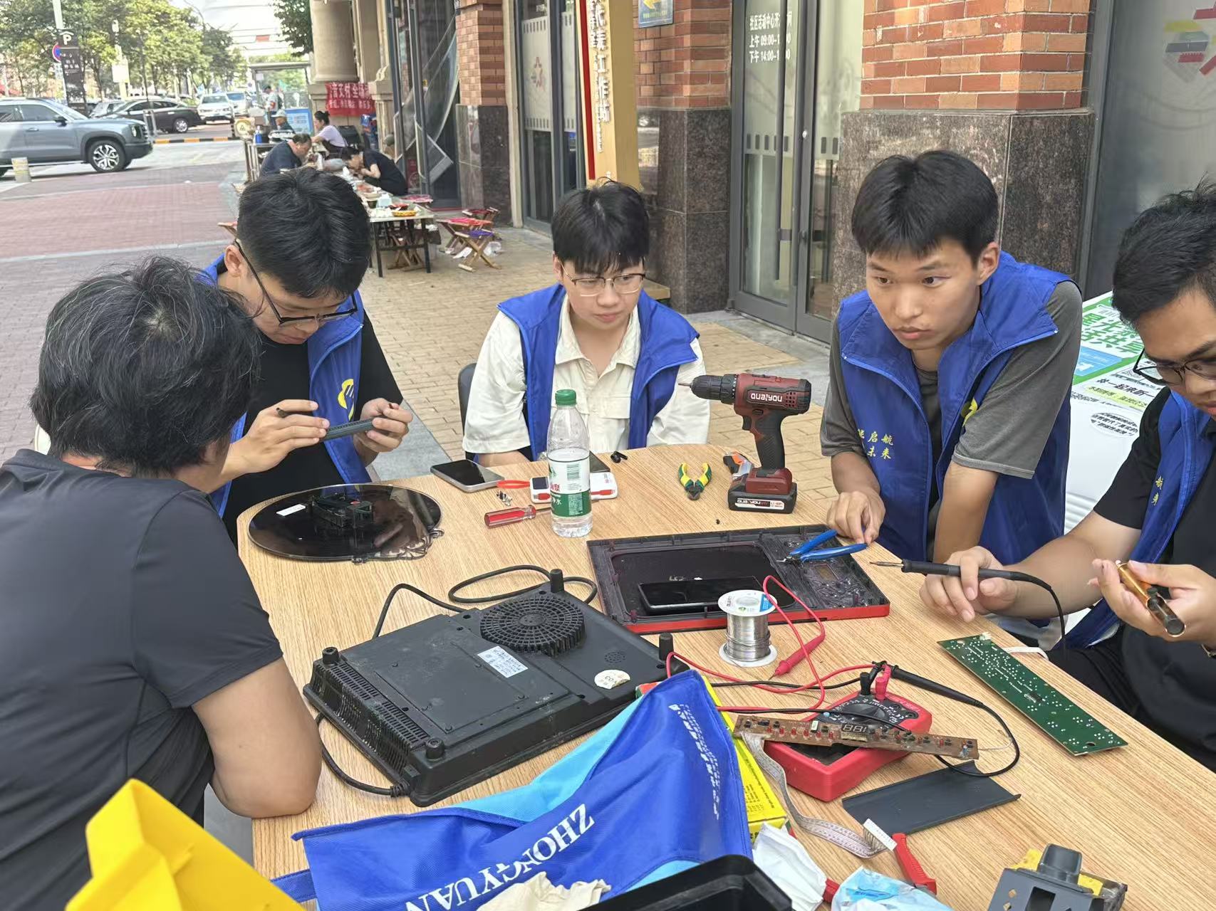 9月14日,智能创新协会组织10余名成员,将课堂所学知识与公益实践相结合,深入星光岛社区,成功举办了一场名为“青春点亮生活,匠心温暖社区”的小家电义务维修活动。活动现场气氛热烈,闻讯赶来的居民们纷纷从家中拿来了故障的电风扇、电水壶、电磁炉、台灯、收音机等各式小家电,迫不及待地请同学们“会诊”。志愿者们分工明确,有的耐心登记故障信息,有的仔细检查电器内部线路,有的熟练地使用万用表、电烙铁等工具进行检测与维修,他们专注的神情和专业的操作赢得了居民们的连连称赞。此次活动不仅为社区居民解决了生活中的实际困难,节省了维修开支,更让同学们在动手实践中巩固了专业知识,提升了沟通与服务社会的能力,充分展现了当代大学生乐于奉献、学以致用的良好精神风貌,成功地在校园与社区之间架起了一座温暖的互助之桥。