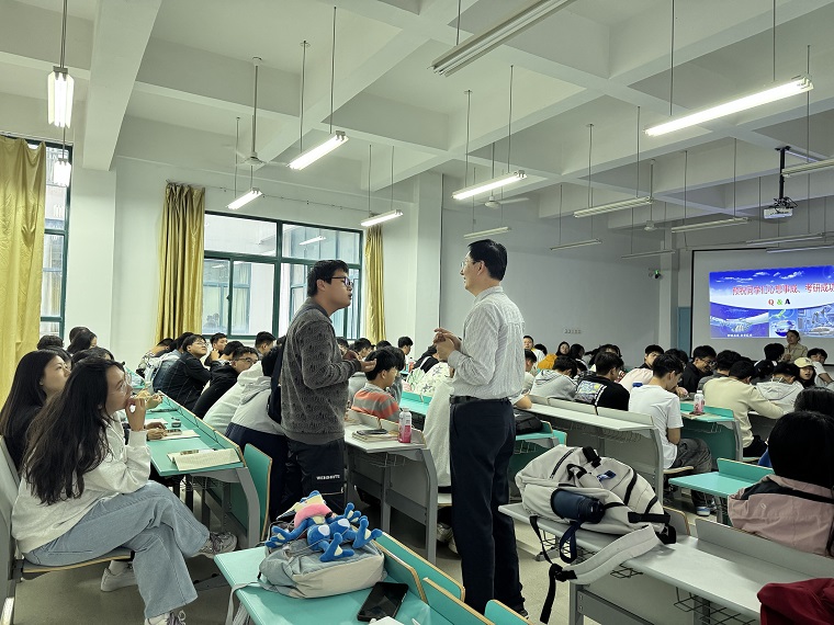 活动的最后环节,周风余教授面向有考研意向的学子们做了一场精准的考研指导报告。他结合山东大学等高水平大学的招生要求,从考研形势分析、院校专业选择、备考战略规划、复试技巧等关键环节,为同学们进行了系统梳理和权威解读。周教授鼓励同学们要尽早明确目标,科学制定复习计划,并着重强调了夯实专业基础知识和培养综合创新能力的重要性。在互动环节,同学们踊跃提问,周教授均给予了耐心细致的解答,现场气氛热烈。这场报告为正处于迷茫与焦虑中的学子们点亮了一盏明灯,极大地增强了他们的备考信心。