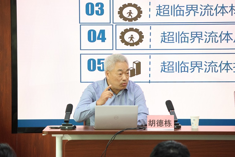 报告伊始,胡德栋教授配以视频和动画,生动形象地阐述了超临界流体的特性及常用材料,其中超临界CO2因其临界温度和压力相对较低,且具无毒、安全、环保、价廉等优点而应用最广。